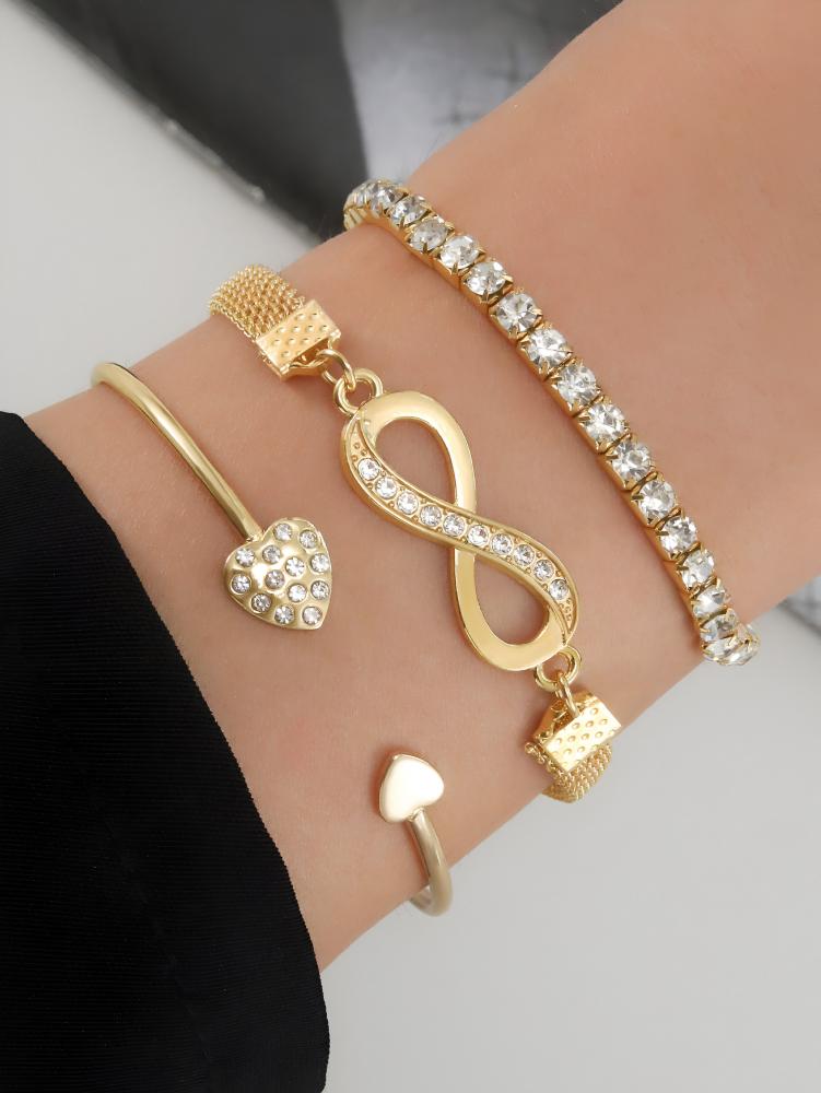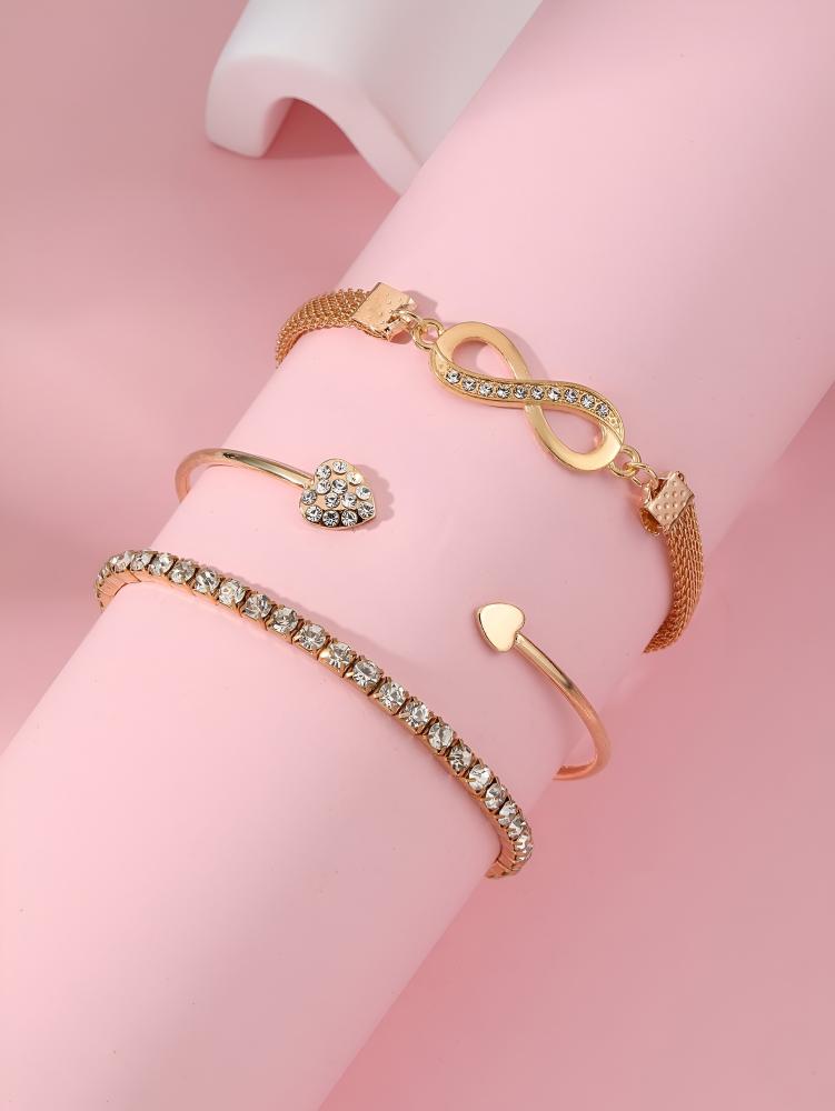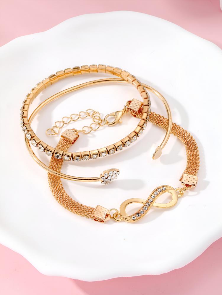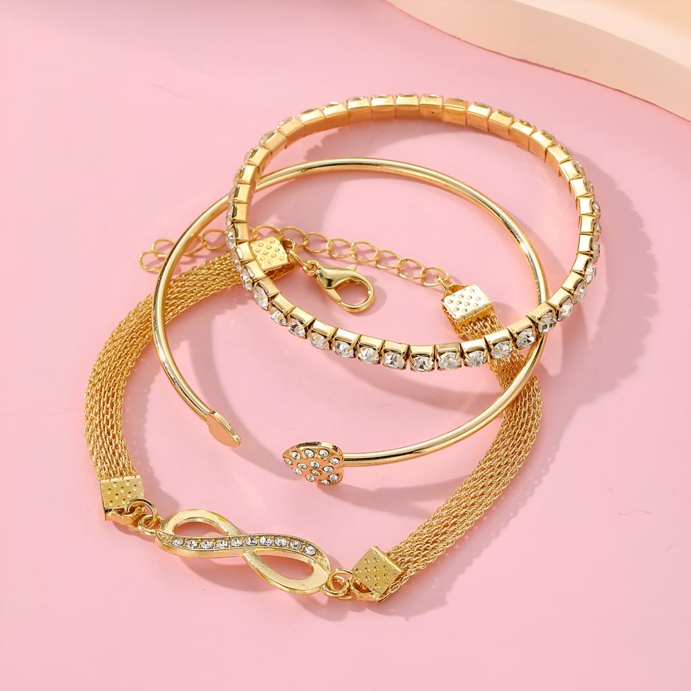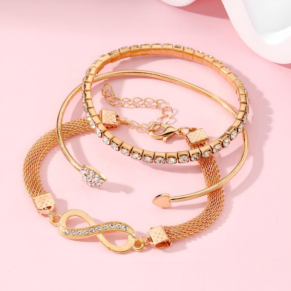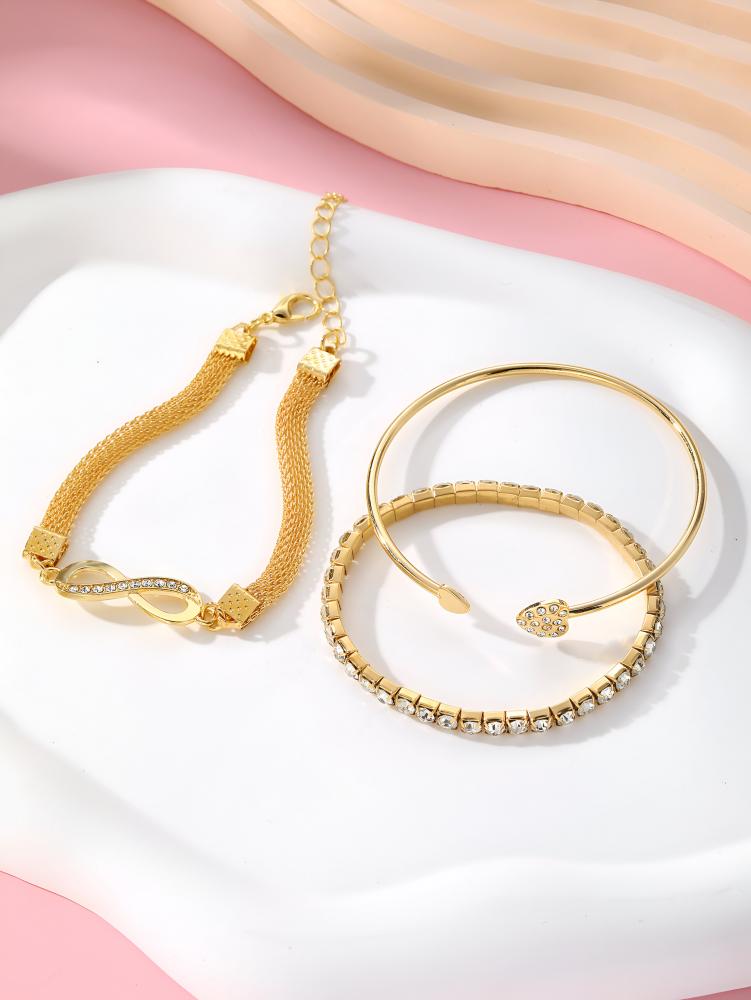 Bracelete de Feminino Dourado de 3 peças Brilhante