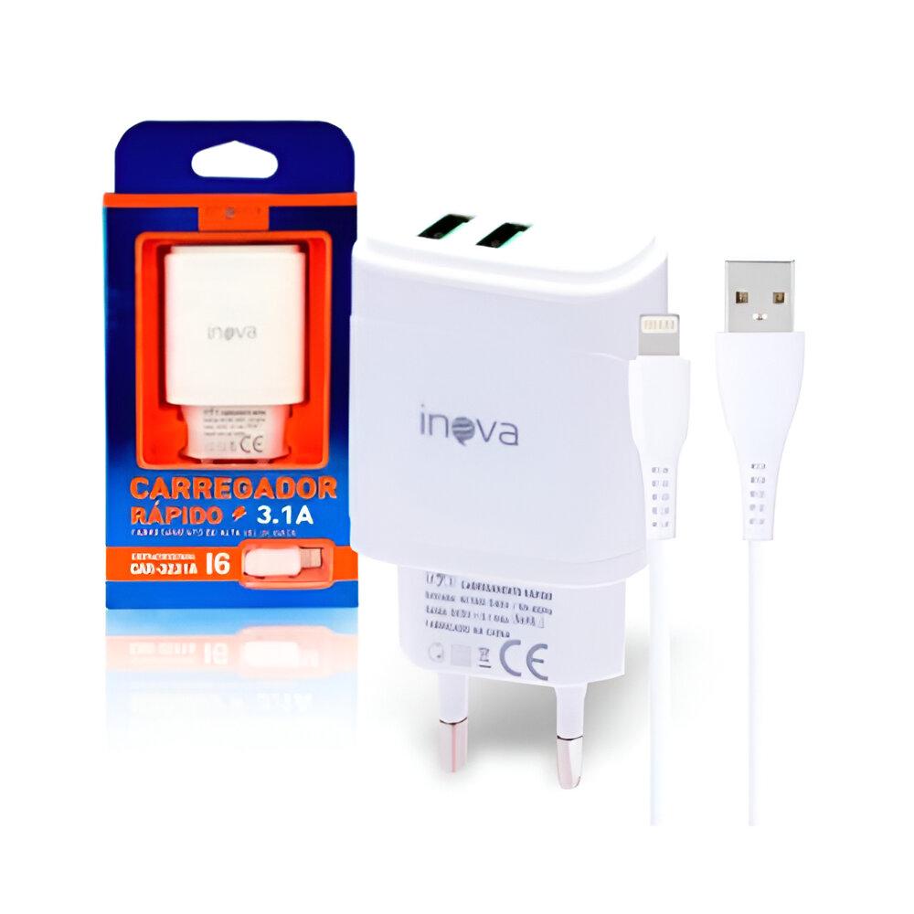 Carregador De Celular 2 Portas USB 3.1A e Cabo Lightning
